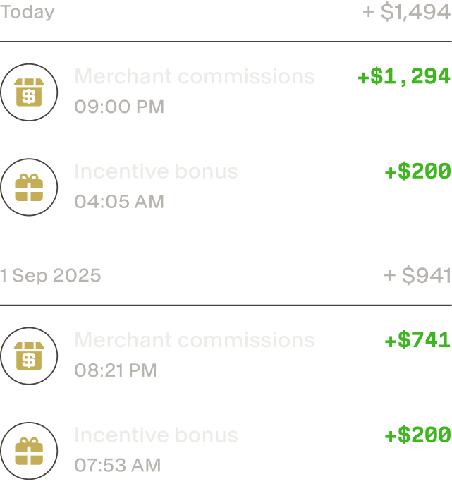 Every time you onboard a verified merchant, you will receive a profit share from the platform fees on every transaction they do with customers.