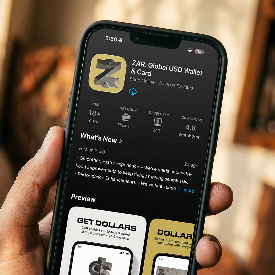 ZAR gives you a USD account that let's you receive & save money in Dollars, ready for use anywhere, anytime.